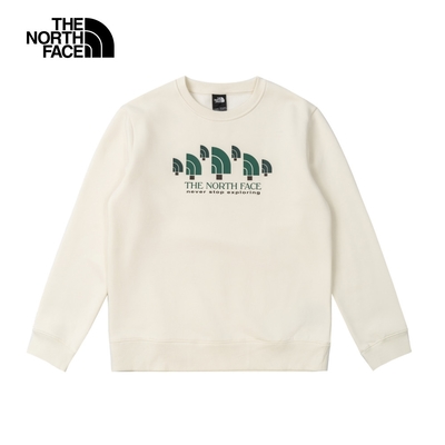 The North Face 官方旗艦 北面女款米白色舒適保暖胸前趣味品牌印花長袖大學T|8AT1QLI