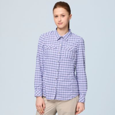【WILDLAND荒野】女彈性格紋輕薄抗UV長袖襯衫114灰紫色