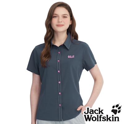 【Jack wolfskin飛狼】女 純植萃防蚊 撞色短袖防曬襯衫 『深藍』$1,880