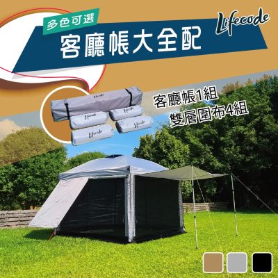 LIFECODE《大全配》黑膠客廳帳篷+雙層圍布(4入組)-4色可選
