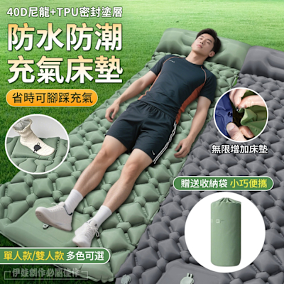 自動充放氣加厚充氣床墊 帶枕充氣睡墊 氣墊床 露營床墊(可單人/雙人 附收納袋)$899
