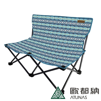 【ATUNAS 歐都納】圖騰雙人折疊情人椅A1CDCC08圖騰藍/戶外露營椅/低座椅型/免組裝/快速收摺