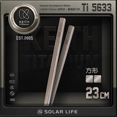 Keith 鎧斯鈦實心方形鈦筷 23cm / Ti5633.鈦筷子 純鈦方形筷 鈦環保筷 隨身鈦餐具 環保餐具$550