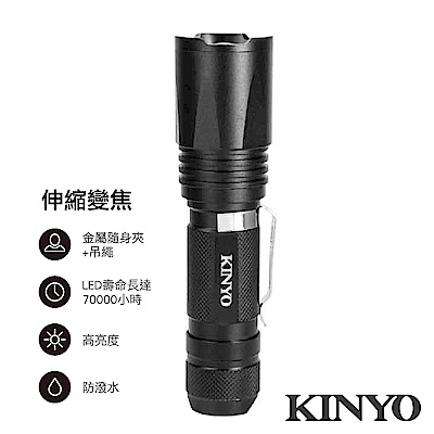 KINYO鋁合金多功能LED變焦手電筒LED501$199