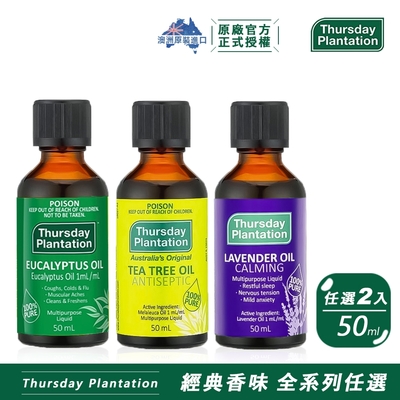 【Thursday Plantation 星期四農莊】經典精油50ml全系列任選2入 (尤加利/茶樹/薰衣草)$827$918