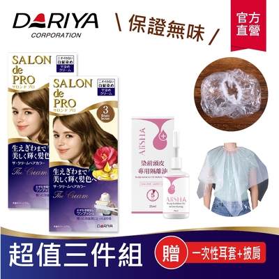 【DARIYA塔莉雅】(2件組)沙龍級白髮專用快速染髮霜2盒(贈披肩&耳套&+頭皮專用隔離油)$73184折