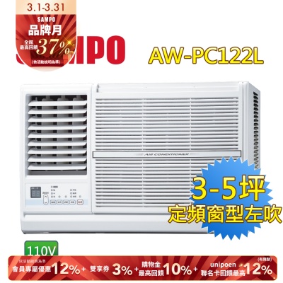 SAMPO聲寶 3-5坪 110V 定頻左吹窗型冷氣 AW-PC122L 含基本安裝+舊機回收$14,0409折