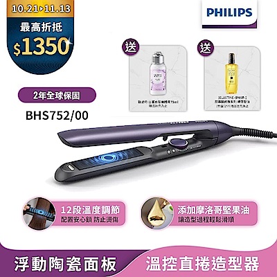 【Philips飛利浦】官方直營 國際電壓 BHS752 直捲兩用溫控護色水潤負離子美髮造型器$2,488