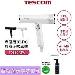 【TESCOM】BLDC專業級負離子吹風機-TD880(白)+贈康定酵素植萃洗髮乳300ml*1$5,490