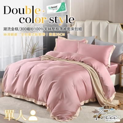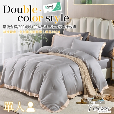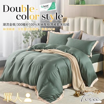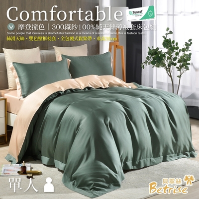 Betrise墨黛綠/杏 單人-摩登撞色系列 頂級300織紗100%純天絲三件式薄被套床包組