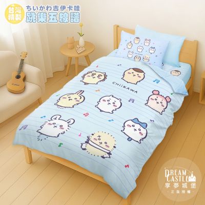 享夢城堡 單人床包雙人涼被三件組-吉伊卡哇chiikawa 小八烏薩奇 跳樂五線譜-藍$1,44586折