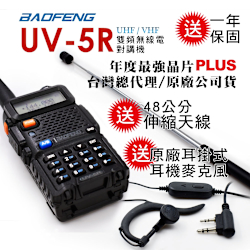 BAOFENG 寶峰 UV-5R 雙頻對講機|雙電池版(送40cm長天線/送原廠1800mAh備用電池)$789
