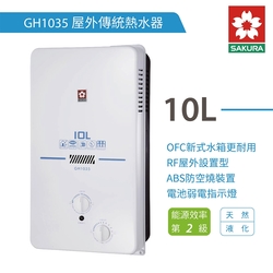 櫻花牌 SAKURA 10L 屋外型瓦斯熱水器 不含安裝 GH1035(NG1/RF式) 天然瓦斯