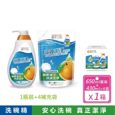 【橘子工坊 】高效潔淨洗碗精 650毫升 + 補充包 430毫升 X 4入$599