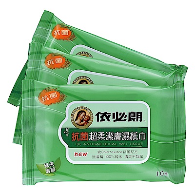 依必朗抗菌超柔潔膚濕紙巾-綠茶清新(10抽*3入)