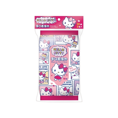Hello Kitty 抑菌柔濕巾/手口柔濕巾(10抽x3包) 款式可選【小三美日】DS007921 出遊
