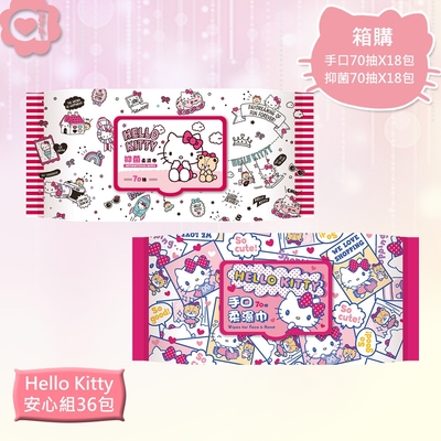 Hello Kitty 凱蒂貓手口抑菌有蓋柔濕巾安心組 手口70抽+抑菌70抽 共36包 (箱購)加蓋濕紙巾量販組$1,620$1,700