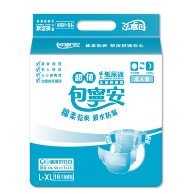 包寧安超值乾爽成人紙尿褲L-XL96片(箱)【愛買】