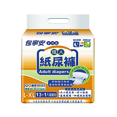 【包寧安】全功能成人紙尿褲L-XL 14片X6包(共84片) 箱購