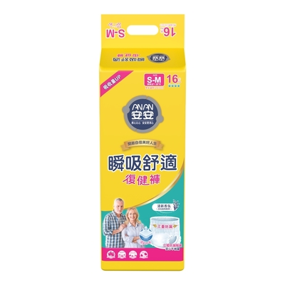 安安 瞬吸舒適復健褲 S-M號 成人紙尿褲(16片x4包/箱)$1,145