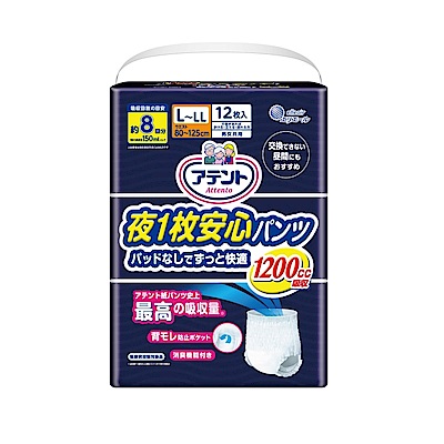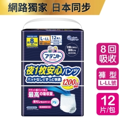日本大王 Attento愛適多夜間超安心褲型強效_8回吸收 L~LL (12片/包)