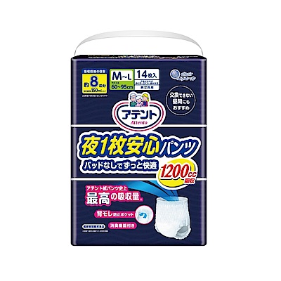 日本大王 Attento愛適多夜間超安心褲型強效_8回吸收 M~L (14片/包)