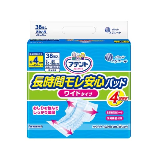 商店大王 Attento 愛適多 日用超透氣防漏加長加寬尿片-4回吸收 (38片/4包/箱)【杏一】