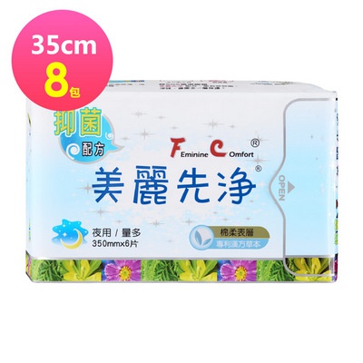 機能性保養專利 照顧私密不煩惱FC美麗先淨 草本抑菌衛生棉 35cm 夜用 6片/包 X8包$399升級購