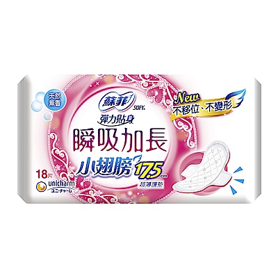 蘇菲 彈力貼身瞬吸加長小翅膀超薄護墊無香(17.5CM)(18片 x2包/組)