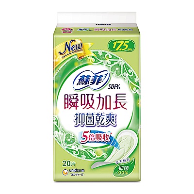 蘇菲 瞬吸加長超薄護墊-天然無香(17.5CM)(28片 x 18包/組)