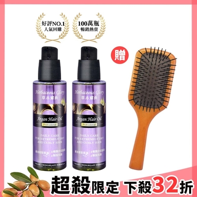 德國草本耀典摩洛哥護髮油100mlx2入贈超強木頭氣墊梳