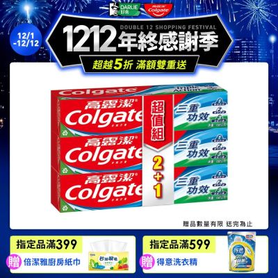 高露潔 三重功效牙膏160g 2+1入(口腔清潔/口氣清新)$153