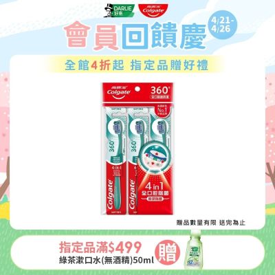 3倍深入牙縫高露潔 360°牙刷3入(深層潔淨/軟毛牙刷)$1535(4)總銷量>50會員日活動