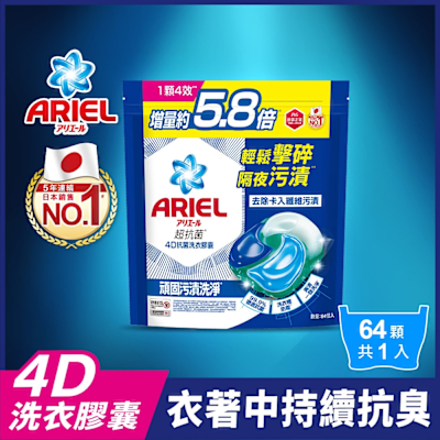 【ARIEL】4D抗菌洗衣膠囊64顆袋裝(抗菌去漬/室內晾衣)