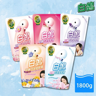 白鴿柔軟精補充包1800g(小蒼蘭/幸福花香/高雅玫瑰/富士櫻/薰衣草 5款任選)$67