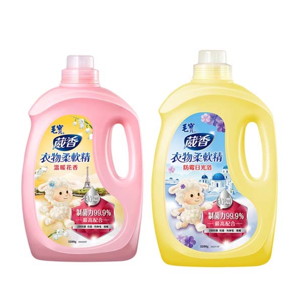 毛寶葳香衣物柔軟精3200g 溫暖花香/防霉日光浴x2瓶