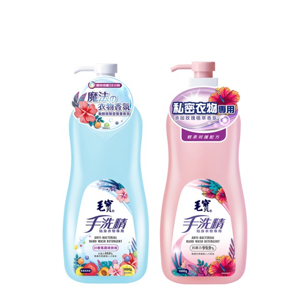 毛寶 貼身衣物手洗精1000g(玫瑰天竺葵/果漾西西里)