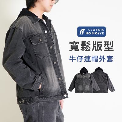 【NoMorre】牛仔外套 寬鬆版型牛仔外套 可拆卸連帽 工裝外套 質感水洗黑色牛仔布 M-XL 台灣現貨 #1238$1,050