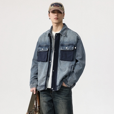 [米蘭精品] 牛仔外套丹寧夾克-復古撞色口袋牛仔男外套74iz9$2,20089折
