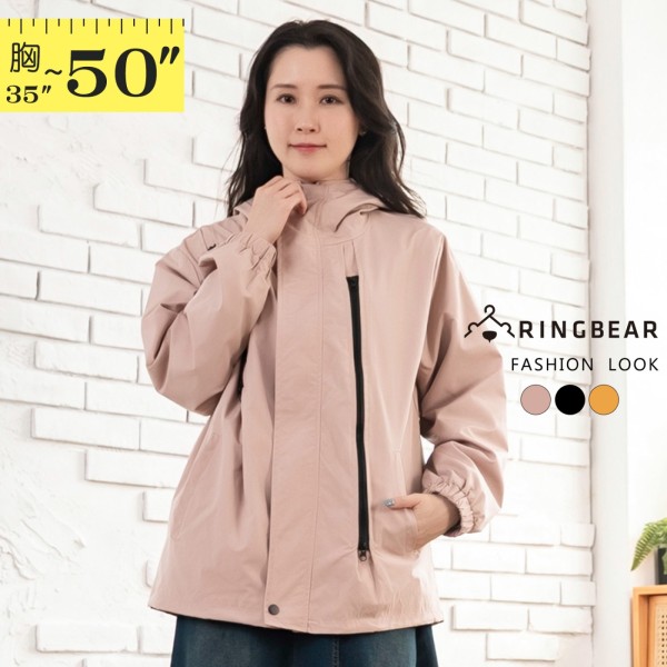 商店防風外套--舒適休閒機能性拉鏈防風連帽衝鋒衣外套(黑.粉.黃L-4L)-J401眼圈熊中大尺碼