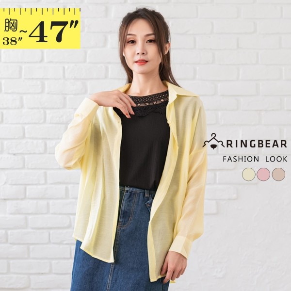 薄外套--簡約舒適自在素色百搭下擺圓弧剪裁翻領薄罩衫(粉.黃.杏XL-3L)-J358眼圈熊中大尺碼