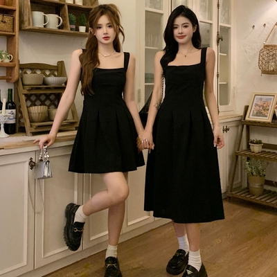 MOCO赫本風貴氣黑色吊帶洋裝法式高級感小禮服收腰顯瘦洋裝L~4XL