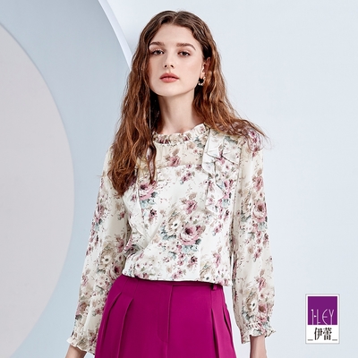 ILEY伊蕾 立領荷葉花卉雪紡上衣(白色;M-XL)1233071406$1,1529折