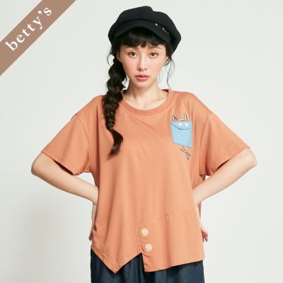 betty’s貝蒂思 小貓咪牛仔口袋寬版T-shirt(咖啡)$1,026