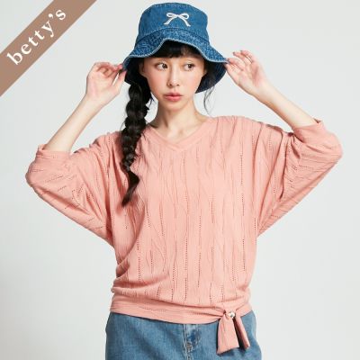 betty’s貝蒂思 立體壓花後腰抽繩短袖T-shirt (黑色)$1,341