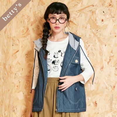 betty’s貝蒂思 小貓咪牛仔口袋長袖T-shirt(深藍)$1,071