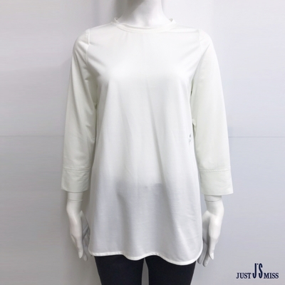 【Just J’S Miss】胸前特殊抓皺 落肩 百搭素色圓領 短袖上衣 005S3$500