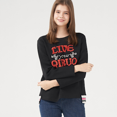 獨身貴族 美麗人生朵朵綻放繡花長袖T恤(2色)
