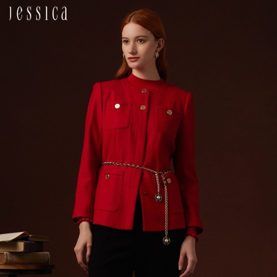 JESSICA - 氣質修身羊毛口袋圖領小香風外套235001(紅)$1,090
