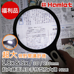 【Hamlet 哈姆雷特】1.8x&5x/3D/130mm 超大鏡面LED手持型放大鏡【N212】(福利品)$548